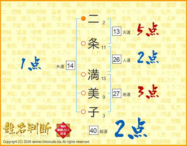 二条満美子さんの外運は14画の1点!
