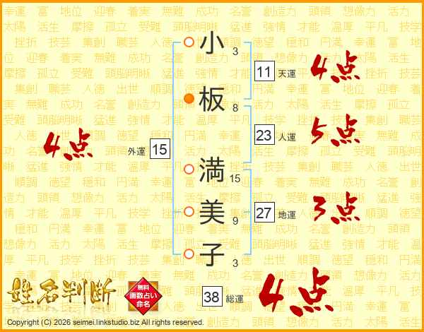 小板満美子さんの総運は38画の4点!