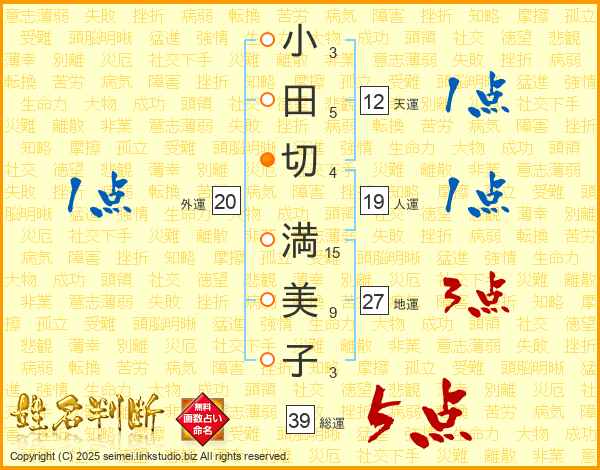 小田切満美子さんの総運は39画の5点!