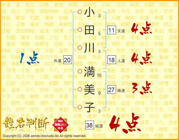 小田川満美子さんの総運は38画の4点!