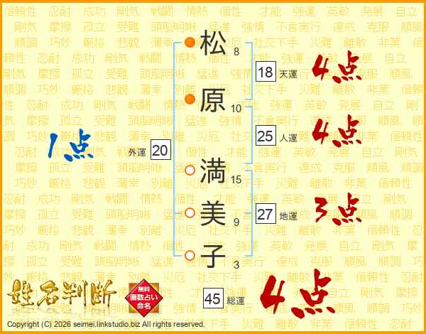 松(8画)原(10画) 満(15画)美(9画)子(3画)