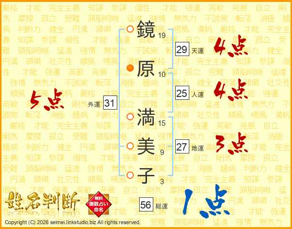 鏡原満美子さんの外運は31画の5点!