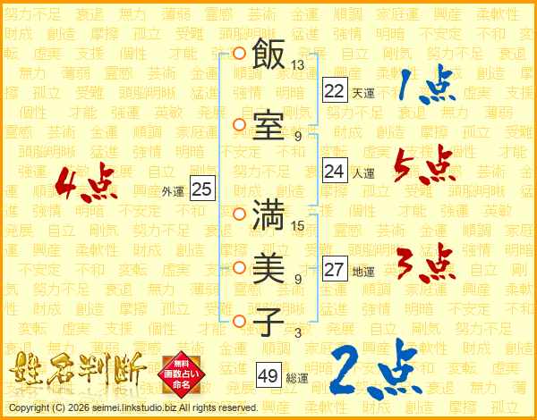 飯室満美子さんの人運は24画の5点!
