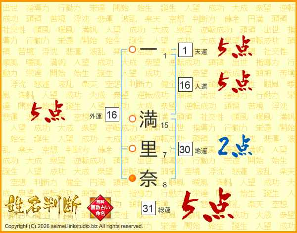 一満里奈さんの総運は31画の5点!