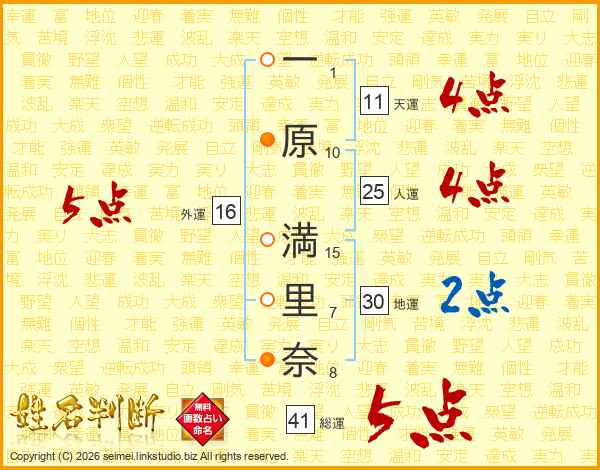 一原満里奈さんの人運は25画の4点!