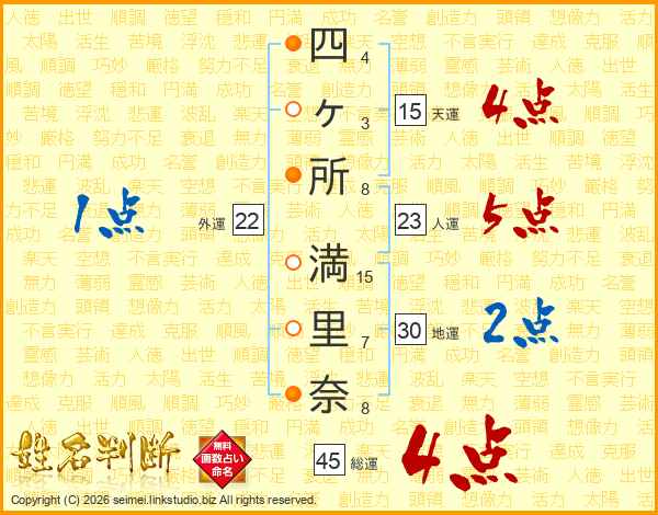 四ヶ所満里奈さんの総運は45画の4点!