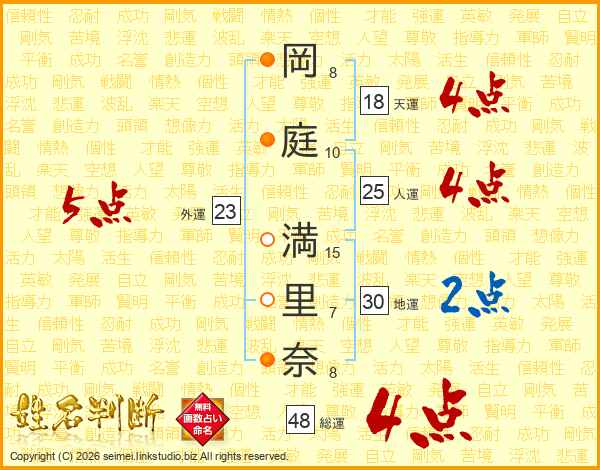 岡庭満里奈さんの総運は48画の4点!