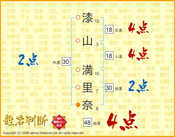 漆山満里奈さんの総運は48画の4点!