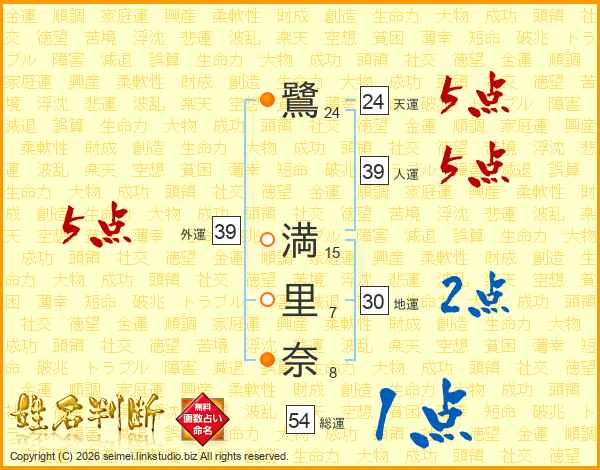 鷺満里奈さんの外運は39画の5点!