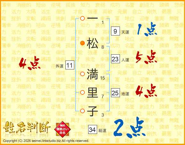 一松満里子さんの総運は34画の2点!
