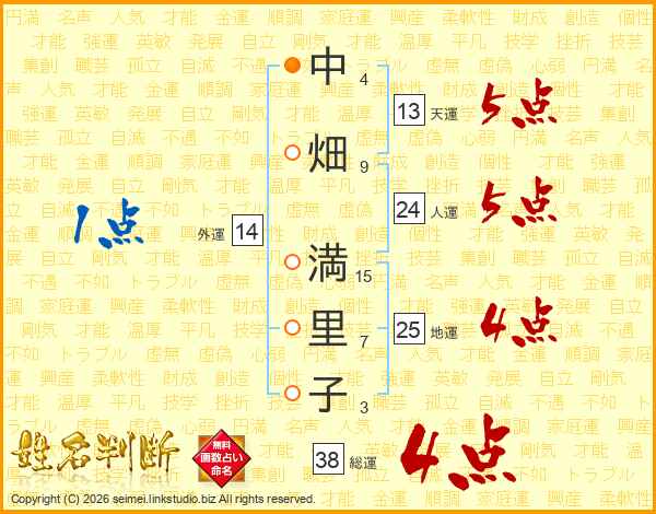 中畑満里子さんの地運は25画の4点!