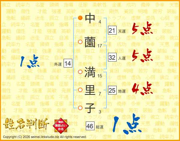 中薗満里子さんの総運は46画の1点!