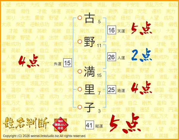 古野満里子さんの総運は41画の5点!