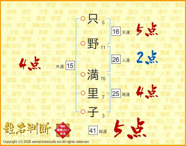 只野満里子さんの地運は25画の4点!