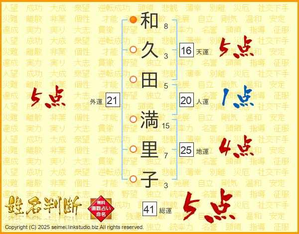 和久田満里子さんの外運は21画の5点!
