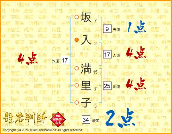 坂入満里子さんの総運は34画の2点!