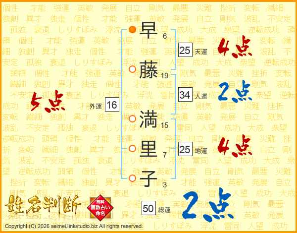 早藤満里子さんの総運は50画の2点!