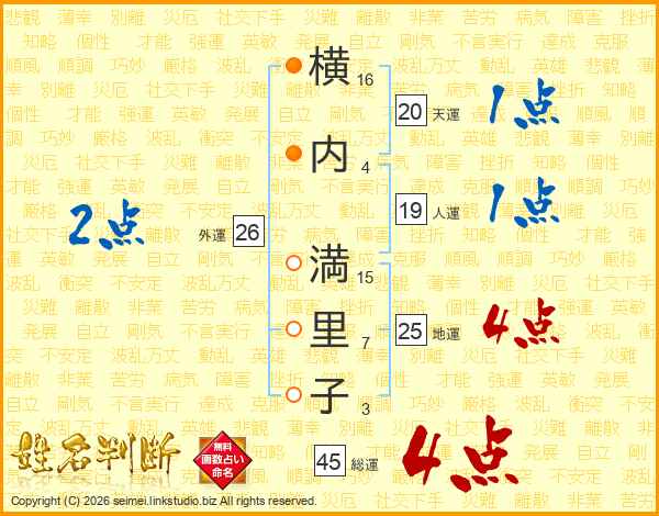 横(16画)内(4画) 満(15画)里(7画)子(3画)