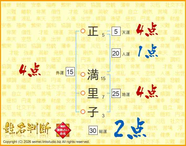 正満里子さんの地運は25画の4点!