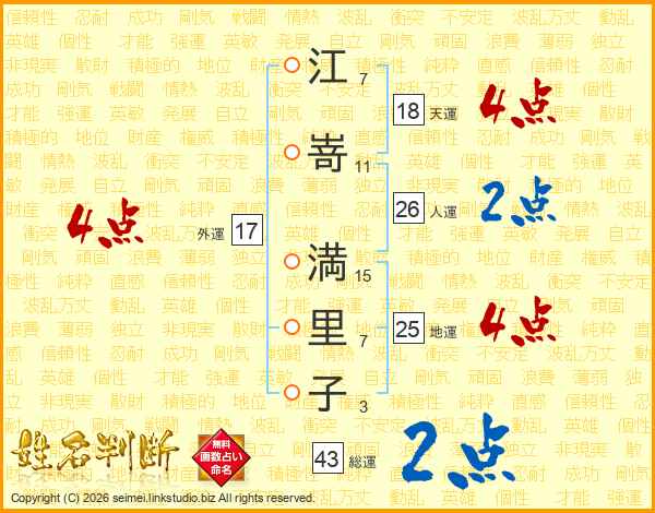 江嵜満里子さんの総運は43画の2点!