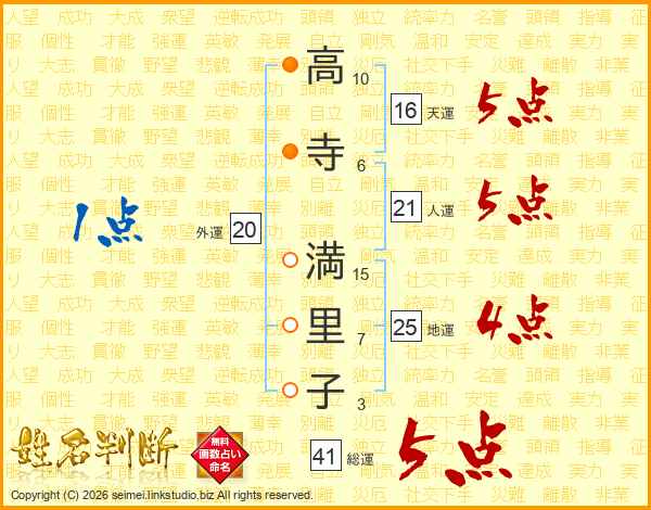 高寺満里子さんの総運は41画の5点!