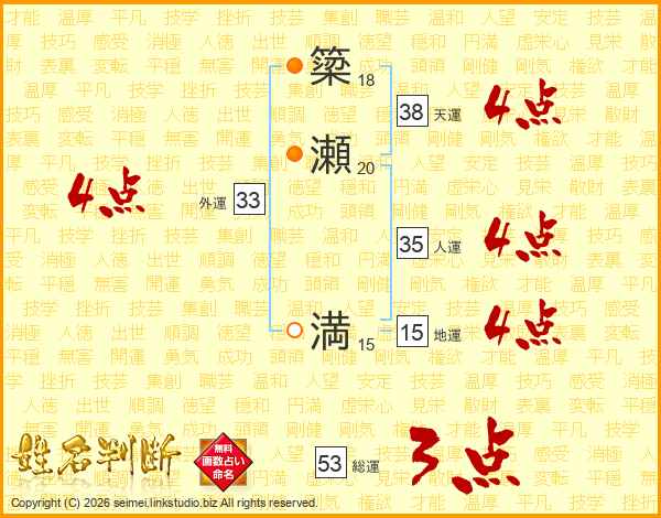 簗瀬満さんの人運は35画の4点!