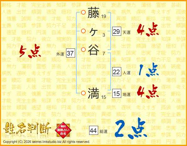藤(19画)ヶ(3画)谷(7画) 満(15画)
