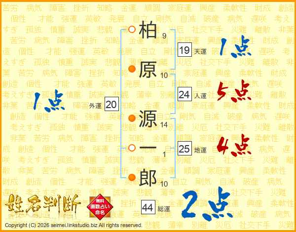 柏原源一郎さんの総運は44画の2点!