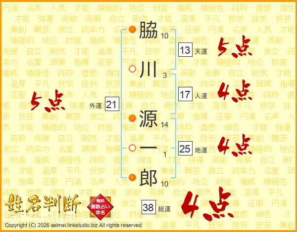脇川源一郎さんの総運は38画の4点!