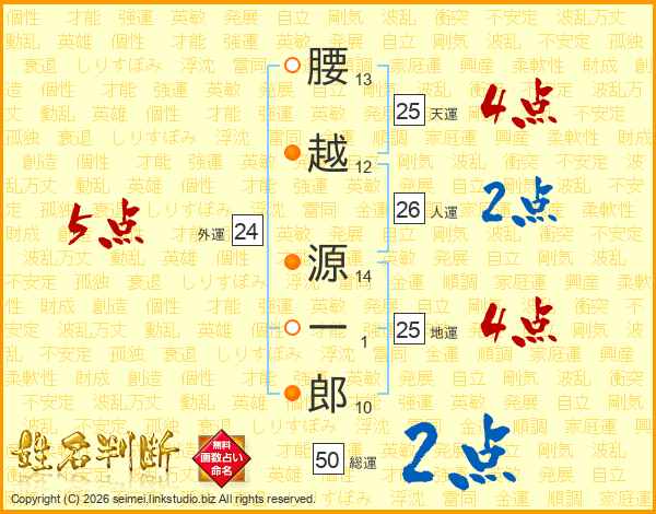 腰越源一郎さんの天運は25画の4点!