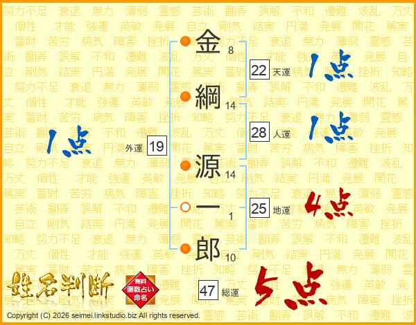金綱源一郎さんの総運は47画の5点!