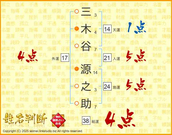 三(3画)木(4画)谷(7画) 源(14画)之(3画)助(7画)