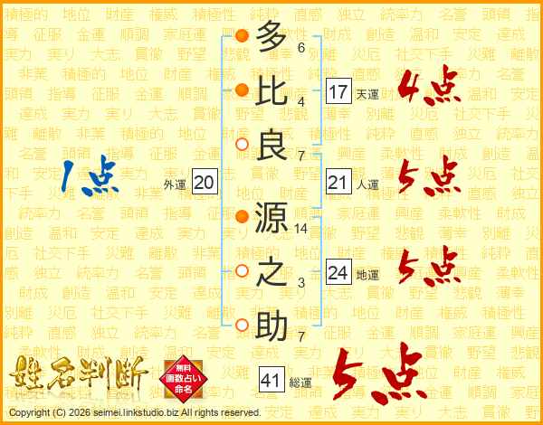 多比良源之助さんの総運は41画の5点!