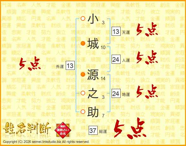 小城源之助さんの総運は37画の5点!