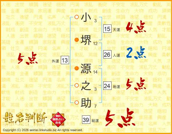 小堺源之助さんの総運は39画の5点!