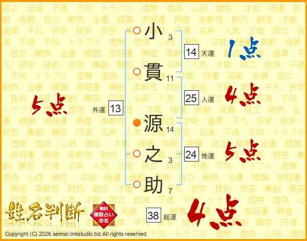 小(3画)貫(11画) 源(14画)之(3画)助(7画)