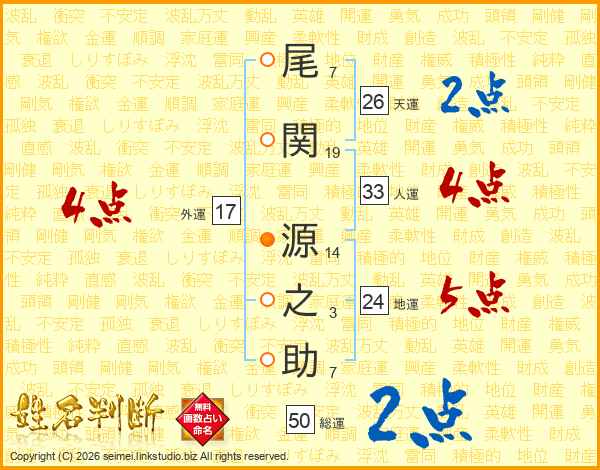 尾関源之助さんの天運は26画の2点!
