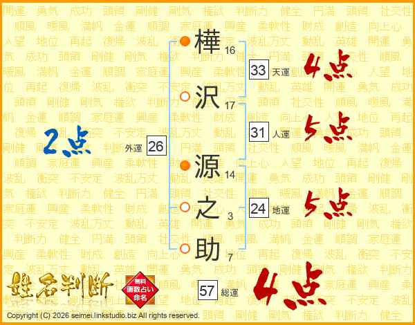 樺沢源之助さんの総運は57画の4点!