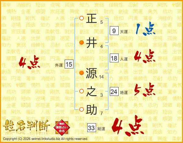 正(5画)井(4画) 源(14画)之(3画)助(7画)