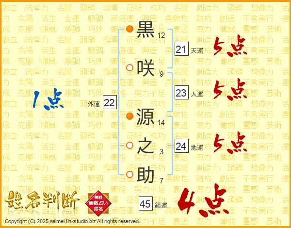 黒咲源之助さんの総運は45画の4点!