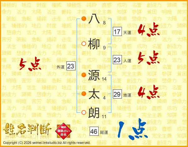 八柳源太朗さんの人運は23画の5点!