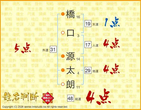 橋口源太朗さんの総運は48画の4点!