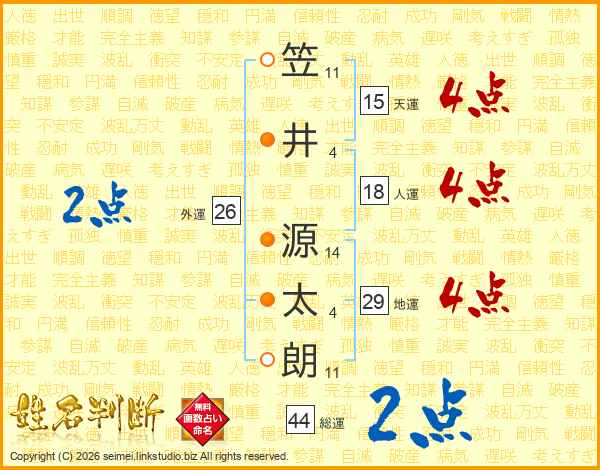 笠(11画)井(4画) 源(14画)太(4画)朗(11画)