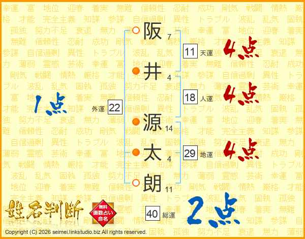 阪井源太朗さんの天運は11画の4点!
