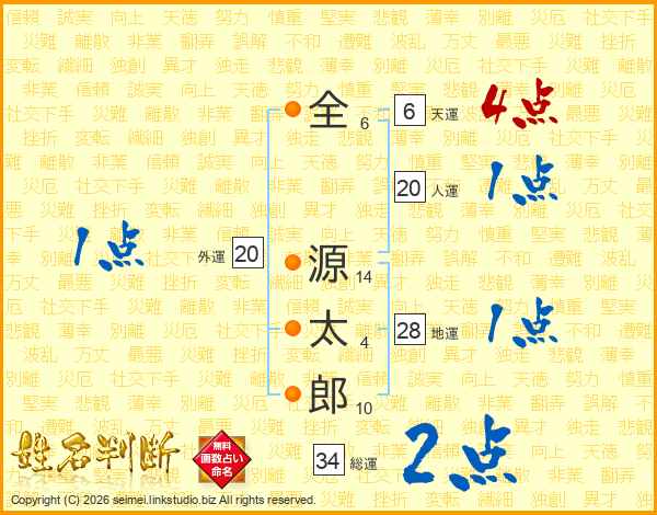 全源太郎さんの人運は20画の1点!