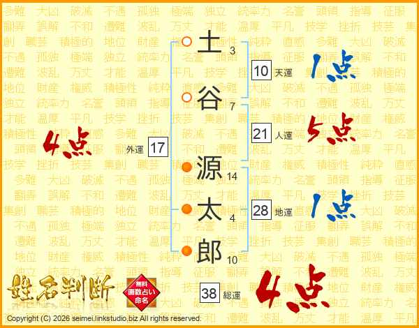 土谷源太郎さんの総運は38画の4点!