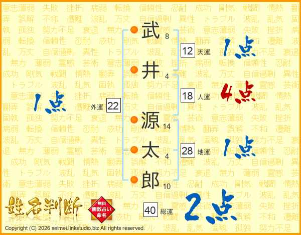 武井源太郎さんの総運は40画の2点!