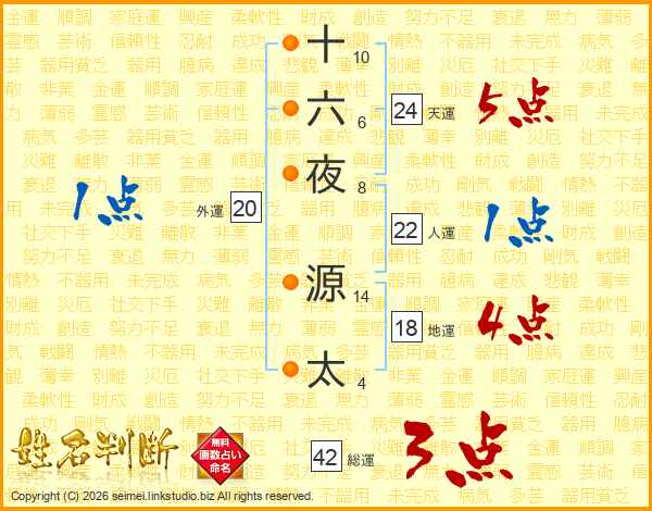 十(10画)六(6画)夜(8画) 源(14画)太(4画)