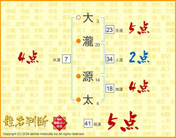 大瀧源太さんの人運は34画の2点!