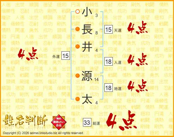 小長井源太さんの天運は15画の4点!